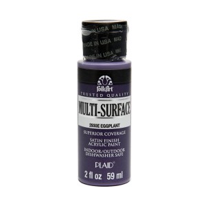 With FolkArt Multi-Surface Acrylic paint, you can paint wood, glass, ceramic, metal, terra cotta, rigid plastic, canvas, styrofoam, slate, paper mache and fabric—all with the same bottle! The patented, self-sealing formula offers superior coverage for fewer coats and quicker drying times. With a dishwasher-safe satin finish, this water-based non-toxic formula resists moisture as well as rust and comes in a wide color palette including basics and trend-right shades.