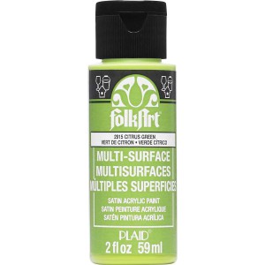 With FolkArt Multi-Surface Acrylic paint, you can paint wood, glass, ceramic, metal, terra cotta, rigid plastic, canvas, styrofoam, slate, paper mache and fabric—all with the same bottle! The patented, self-sealing formula offers superior coverage for fewer coats and quicker drying times. With a dishwasher-safe satin finish, this water-based non-toxic formula resists moisture as well as rust and comes in a wide color palette including basics and trend-right shades.