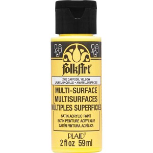 With FolkArt Multi-Surface Acrylic paint, you can paint wood, glass, ceramic, metal, terra cotta, rigid plastic, canvas, styrofoam, slate, paper mache and fabric—all with the same bottle! The patented, self-sealing formula offers superior coverage for fewer coats and quicker drying times. With a dishwasher-safe satin finish, this water-based non-toxic formula resists moisture as well as rust and comes in a wide color palette including basics and trend-right shades.