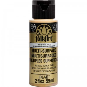 With FolkArt Multi-Surface Acrylic paint, you can paint wood, glass, ceramic, metal, terra cotta, rigid plastic, canvas, styrofoam, slate, paper mache and fabric—all with the same bottle! The patented, self-sealing formula offers superior coverage for fewer coats and quicker drying times. With a dishwasher-safe metallic finish, this water-based non-toxic formula resists moisture as well as rust and comes in a wide color palette including basics and trend-right shades.