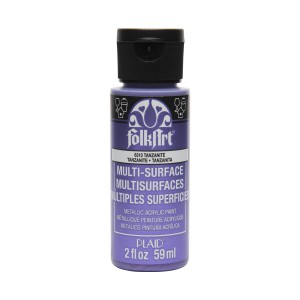 With FolkArt Multi-Surface Acrylic paint, you can paint wood, glass, ceramic, metal, terra cotta, rigid plastic, canvas, styrofoam, slate, paper mache and fabric—all with the same bottle! The patented, self-sealing formula offers superior coverage for fewer coats and quicker drying times. With a dishwasher-safe metallic finish, this water-based non-toxic formula resists moisture as well as rust and comes in a wide color palette including basics and trend-right shades.