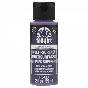 With FolkArt Multi-Surface Acrylic paint, you can paint wood, glass, ceramic, metal, terra cotta, rigid plastic, canvas, styrofoam, slate, paper mache and fabric—all with the same bottle! The patented, self-sealing formula offers superior coverage for fewer coats and quicker drying times. With a dishwasher-safe satin finish, this water-based non-toxic formula resists moisture as well as rust and comes in a wide color palette including basics and trend-right shades.