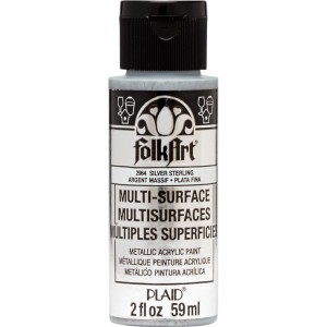 With FolkArt Multi-Surface Acrylic paint, you can paint wood, glass, ceramic, metal, terra cotta, rigid plastic, canvas, styrofoam, slate, paper mache and fabric—all with the same bottle! The patented, self-sealing formula offers superior coverage for fewer coats and quicker drying times. With a dishwasher-safe metallic finish, this water-based non-toxic formula resists moisture as well as rust and comes in a wide color palette including basics and trend-right shades.