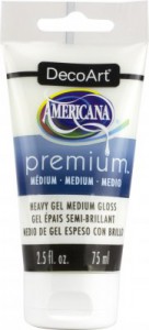 Americana PREMIUM HEAVY GEL MEDIUM. Add glossy texture and dimensional effects to your paintings by mixing Heavy Gel Medium with Americana Premium Acrylic paints or using it alone. Works great with a palette knife, brush, or other texture tools. Add reflective dimension to highlights and build layers of translucent shadows to create greater depth. Extra thick bodied medium. Dries to a hard, translucent gloss finish. Use to create impasto techniques. Ideal for use with stencils. Use Heavy Gel Medium by itself over a finished piece of art to create transparent brush-stroke effects.