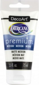 Americana PREMIUM MATTE MEDIUM. Matte Medium is an acrylics medium that allows you to alter the properties of the Americana Premium Acrylics and increase the number of ways they can be used. Its most common uses are to create a uniform matte finish, extend color, and increase transparency.Dries to a durable, transparent, matte finish. Increases transparency. Use to enhance color blending. Fast-drying. Can also be mixed with any water-based acrylic paints.