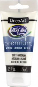Americana PREMIUM GLOSS MEDIUM. Gloss Medium creates a uniform glossy sheen that enhances color intensity. It can also be used to increase transparency, to extend colors, to ease the flow of the paint, or to finish a piece with a glossy varnish. Dries to a durable, transparent, gloss finish. Increases transparency. Use to enhance color blending. Fast-drying.